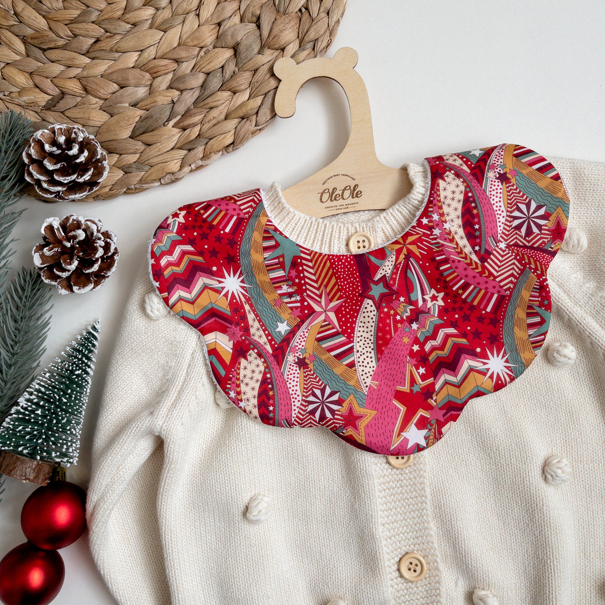 This festive bib is lovingly crafted from authentic Liberty Christmas Tana Lawn fabric, celebrated for its luxurious feel and timeless beauty. Featuring OleOle’s signature scalloped edge, it combines classic elegance with a touch of holiday magic, perfect for celebrating your baby’s first Christmas in style.